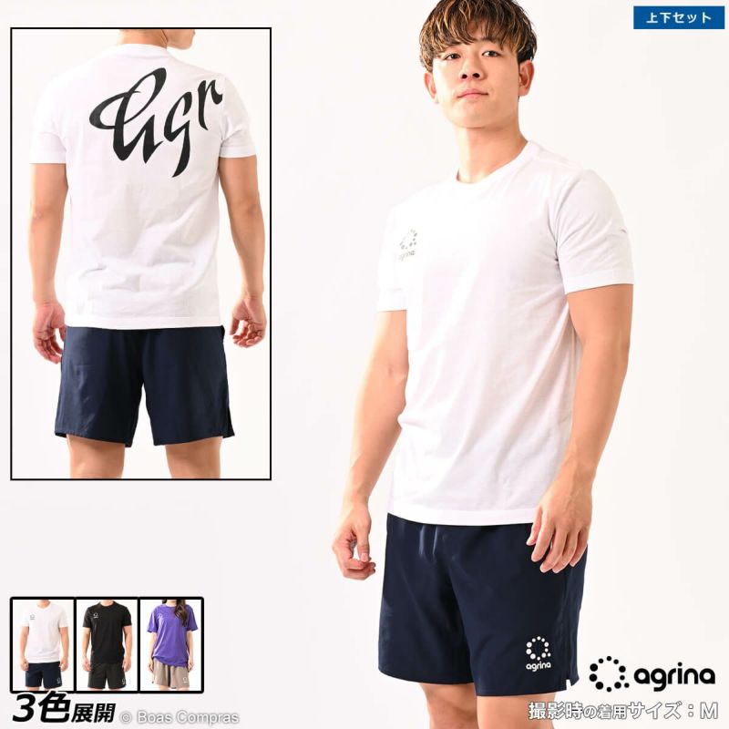 【送料無料】 幅広いシーンで活躍するセットアップ agrina PremiumヴェルソトレーニングTシャツ上下セット