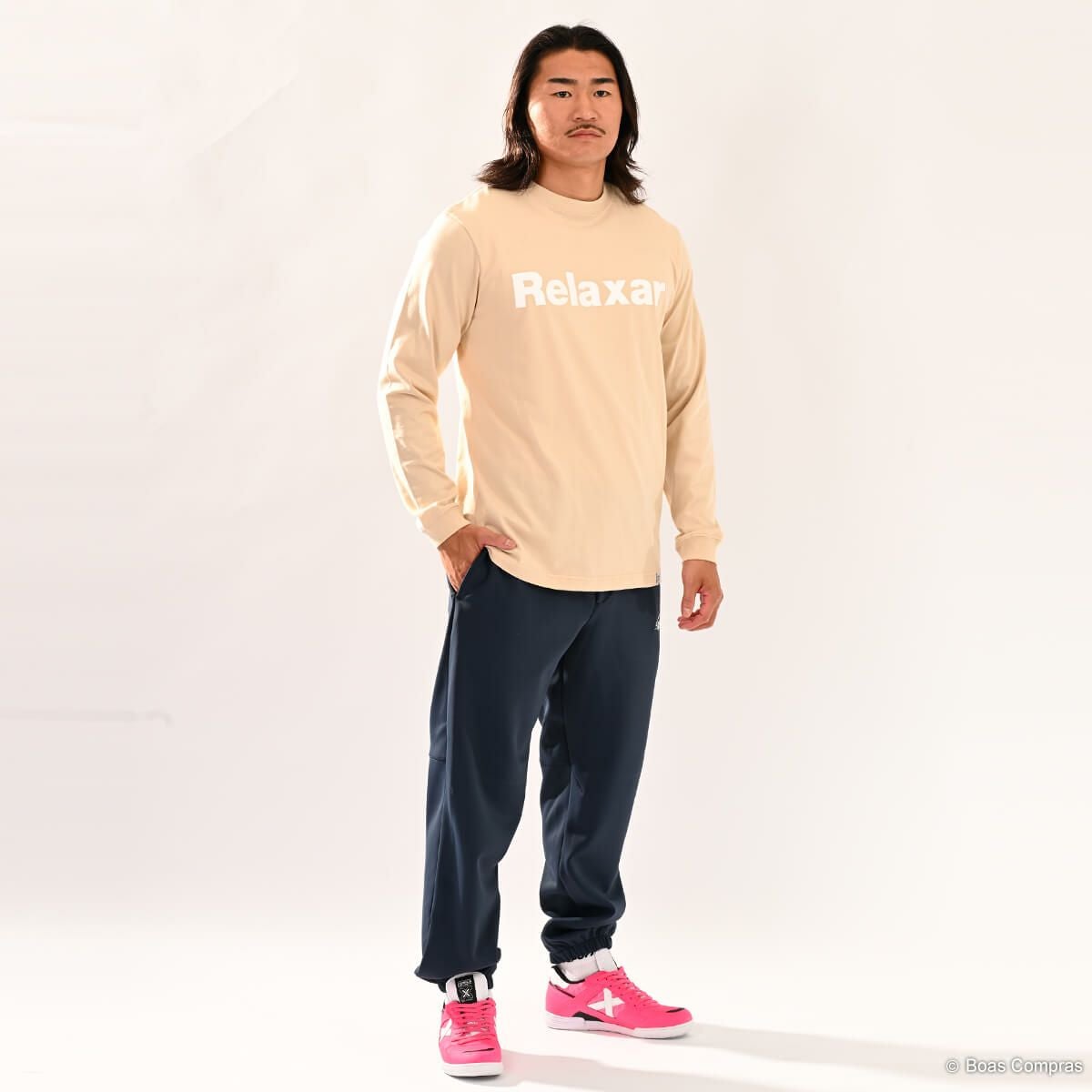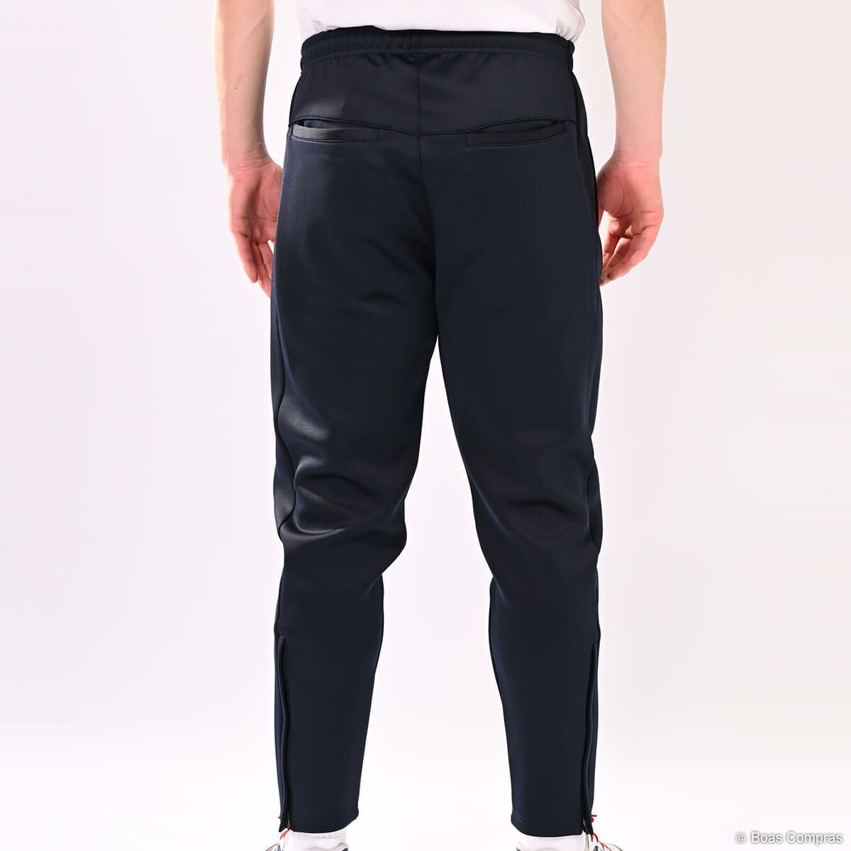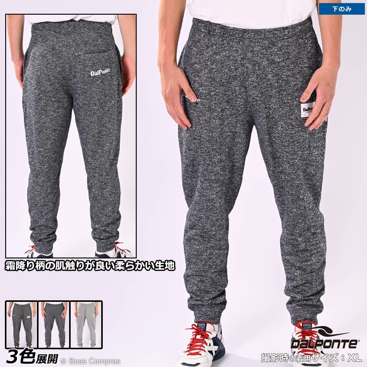 スウェットパンツは今はやりのテーパードパンツを取り入れています!テーパードパンツとはチノパン、カラーパンツ、デニムと様々なパンツで見られますが、裾に向かってシェイプされたシルエットのパンツを指します。定番のスリムパンツの場合は太もも部分も細くシェイプされていますが、テーパードパンツの場合はひざ下から裾に向かってシェイプされており、太もも部分にはゆとりがあるので、動きやすくリラックスした履き心地の上に、すっきりしたスタイルにまとまり、ただのスウェットでは終わらない、魅力的なスウェットスタイルに仕上がります。これまで、フットサルやサッカーで鍛えた腿が張ってスリムパンツやスキニーパンツが履けなかった人でも、テーパードは腰のあたりから太もも辺りまではゆとりがあるのでチャレンジでき、足を細く長く見せる効果があります。