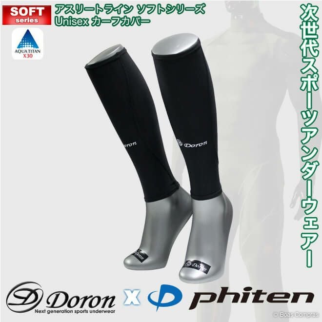 弱裏起毛加工生地を使用!足回りの筋肉をサポート doron x phiten(ドロン x ファイテン) d-0960 アスリートラインソフトシリーズ男女共通カーフカバー 【ネコポス不可】- インナーウェアー スポーツインナー