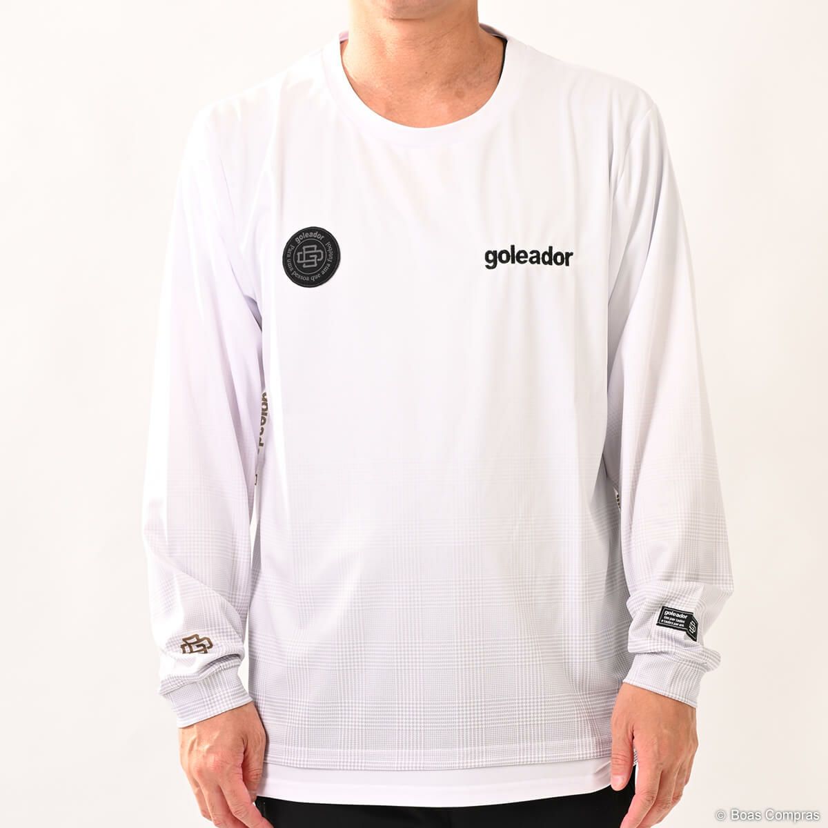 身幅や首回りは少しゆったりとしたシルエットで着やすさ抜群 【ネコポス対応】 goleador 昇華グレンチェックグラデーションプリントフェイクレイヤードプラクティスロングシャツ