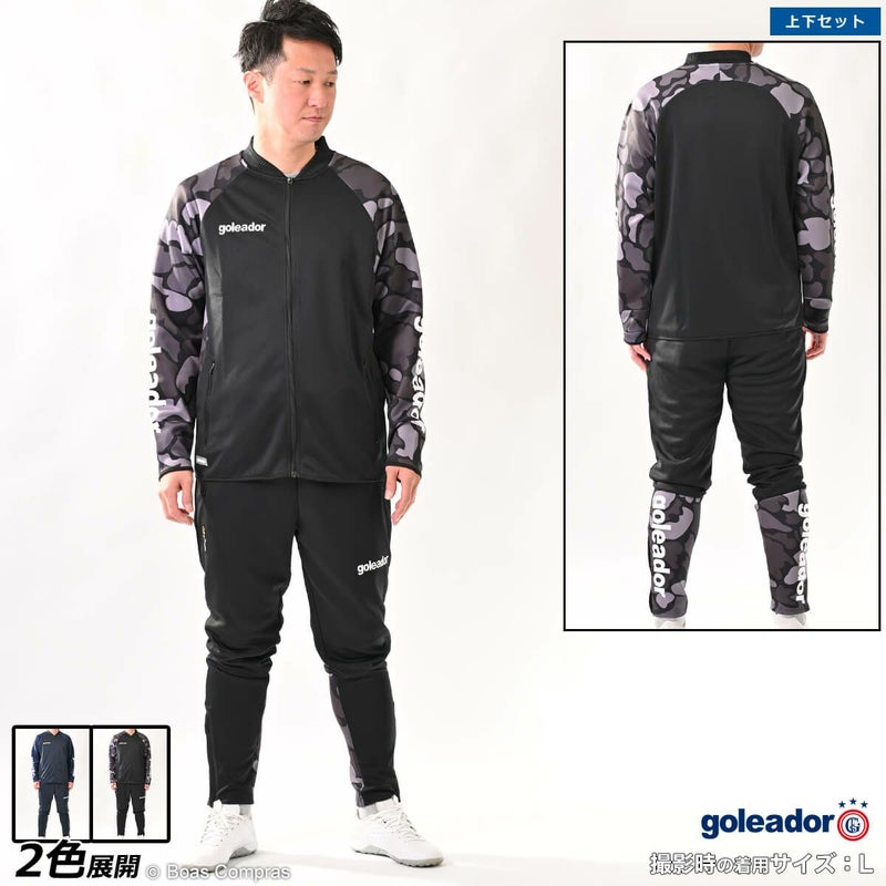 【送料無料】 伸縮性のある素材で迷彩柄がポイント! goleador スムースジャージ迷彩コンビネーションジャケット上下セット