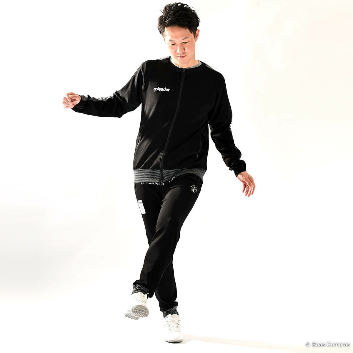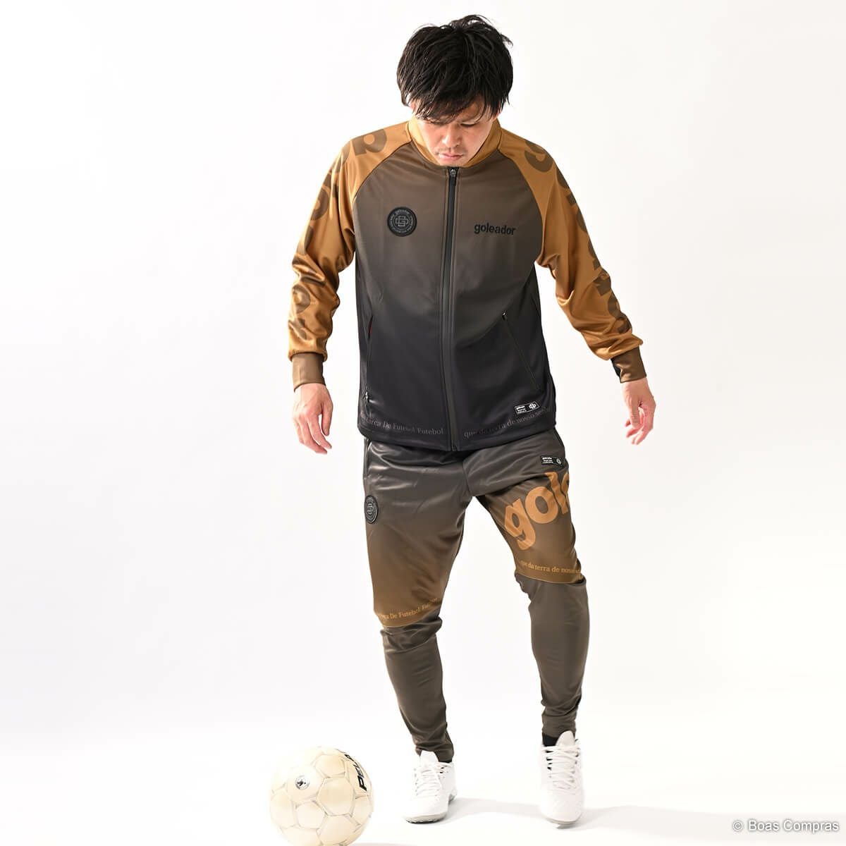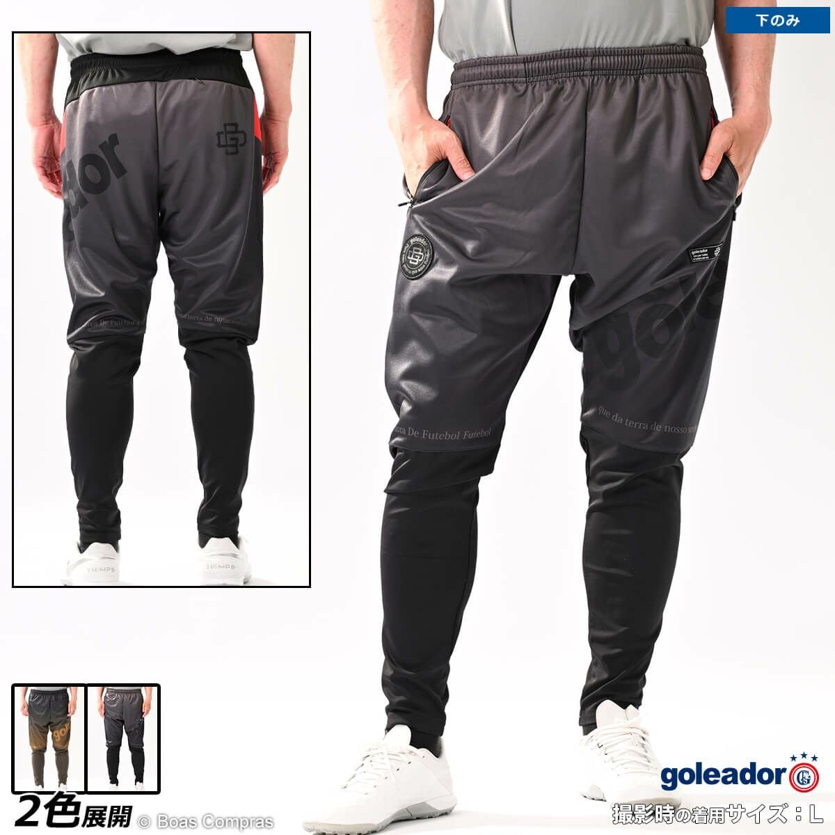 ゴレアドールは『ライフワークにフットボールを!』というブランドコンセプトを掲げていて、普段の生活でも着用できるアイテムがたくさんあります。もちろんジャージもそのアイテムの最たる例で、アウターとしても利用が可能です。また、ジャージパンツがジョッパーパンツ(腰からは膝はゆったり、膝下から足首はキュッと絞るタイプのパンツ)タイプのアイテムもあり、ファッション性の高さから大好評です。ほとんどのアイテムのカラーは、ブラックorダークブルーに白でロゴやブランド名が入るというのが基本で、シンプルなデザインで主張しすぎず、しかもカッコいいという理想的な仕上がりになっています。また、ボアコン×ゴレアドールの限定カラー(ネイビーやイエロー)アイテムもあり、まさにここでしか手に入らない商品もありますのでお見逃しなく!