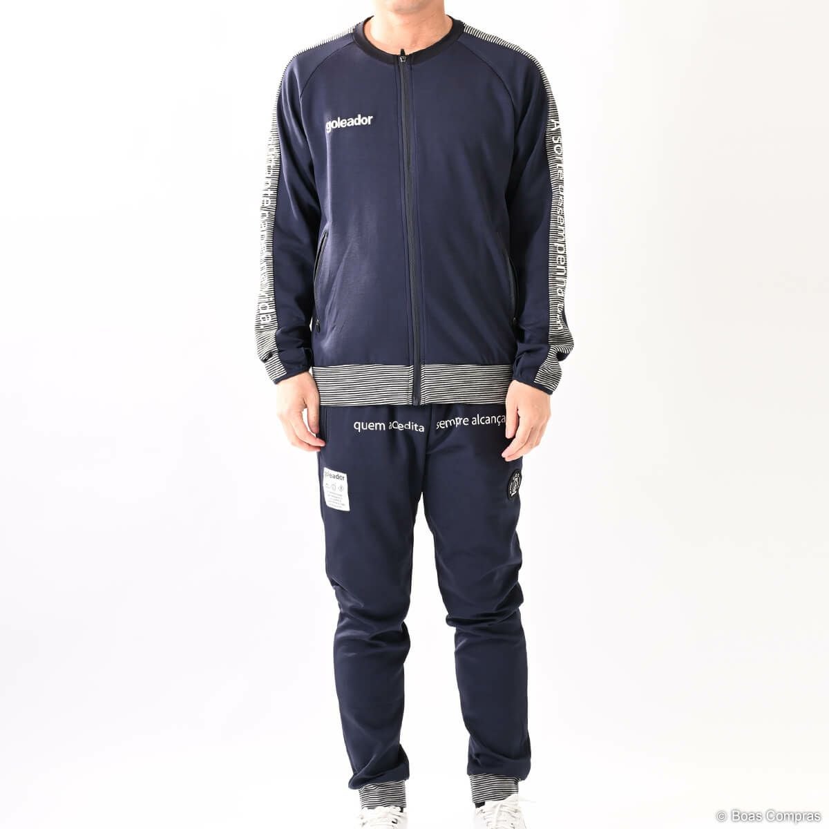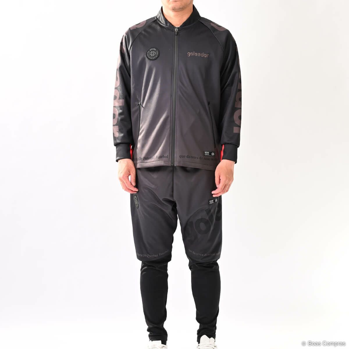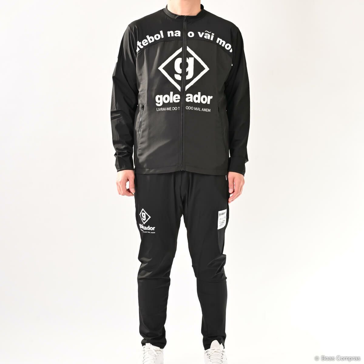 ゴレアドールは『ライフワークにフットボールを!』というブランドコンセプトを掲げていて、普段の生活でも着用できるアイテムがたくさんあります。もちろんジャージもそのアイテムの最たる例で、アウターとしても利用が可能です。また、ジャージパンツがジョッパーパンツ(腰からは膝はゆったり、膝下から足首はキュッと絞るタイプのパンツ)タイプのアイテムもあり、ファッション性の高さから大好評です。ほとんどのアイテムのカラーは、ブラックorダークブルーに白でロゴやブランド名が入るというのが基本で、シンプルなデザインで主張しすぎず、しかもカッコいいという理想的な仕上がりになっています。また、ボアコン×ゴレアドールの限定カラー(ネイビーやイエロー)アイテムもあり、まさにここでしか手に入らない商品もありますのでお見逃しなく!
