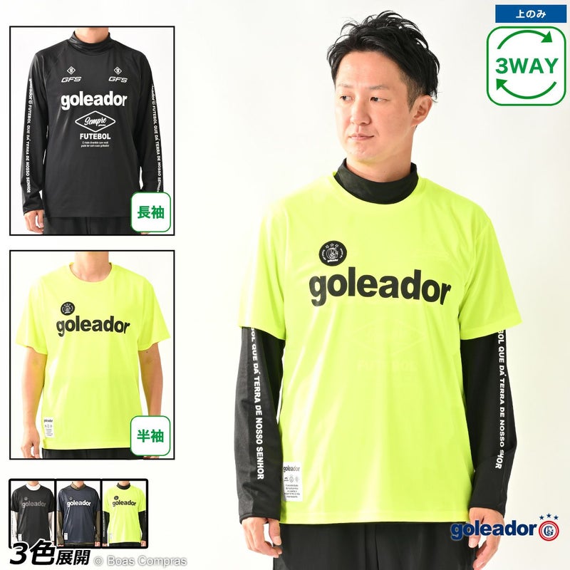 3way!半袖プラシャツと裏起毛ロンプラのセットアイテム 【ネコポス対応】 goleador プラクティス半袖/裏起毛スムースロングプラクティスアンサンブルシャツ