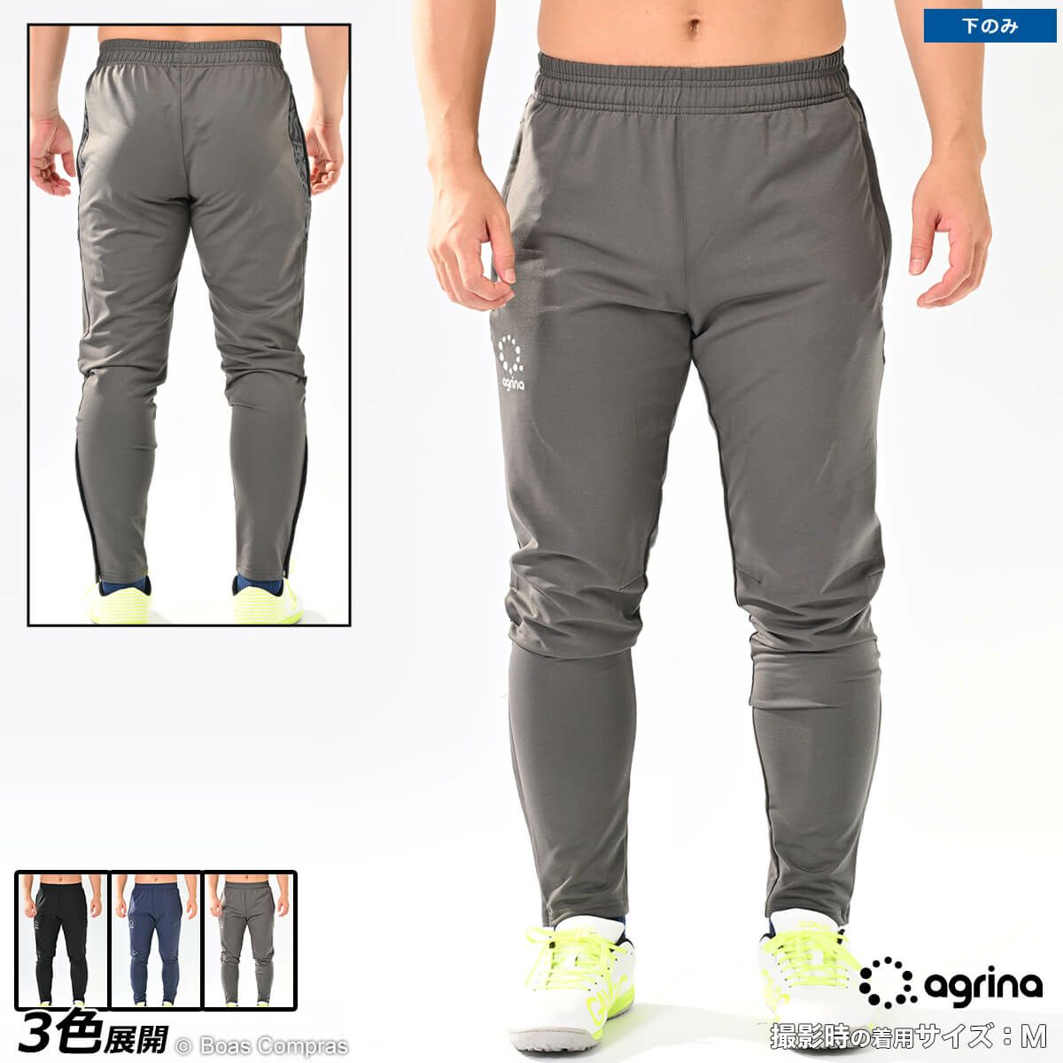 たとえば、goleador(ゴレアドール)、agrina(アグリナ)が導入している、スリムタイプのジャージ。ピッタリフィットするので、スタイルが良く見えます。男女問わず人気が急上昇中です。そして、夏でも着用するジャージハーフパンツ・7分丈のジャージパンツにも注目です。さらに、最近流行りのサルエルパンツなどは、腰下から膝のあたりまで余裕のある構造になっていますので、足を動かすフットサルにはピッタリです。