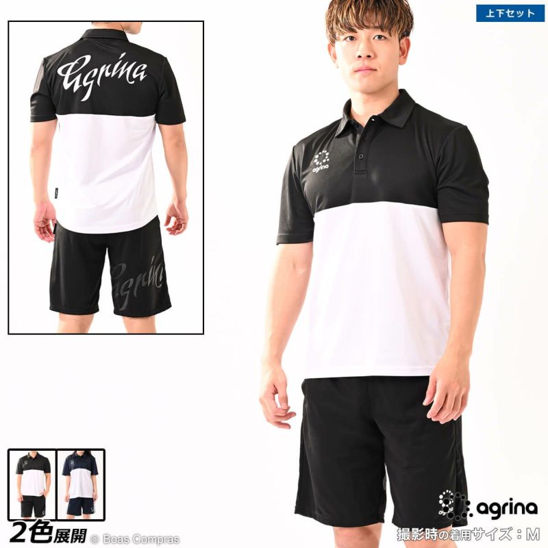 【送料無料】 チームの移動着や、ゴルフやテニスなどのスポーツにも最適 agrina コリスカラーブロックポロシャツ上下セット
