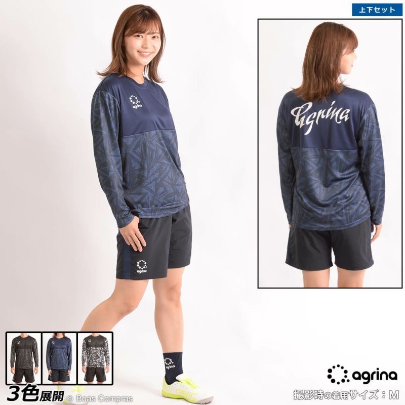 【送料無料】 ゆったりとしたシルエットで動き易さをサポート agrina レガ切替ロングスリーブビックシルエットプラシャツ上下セット