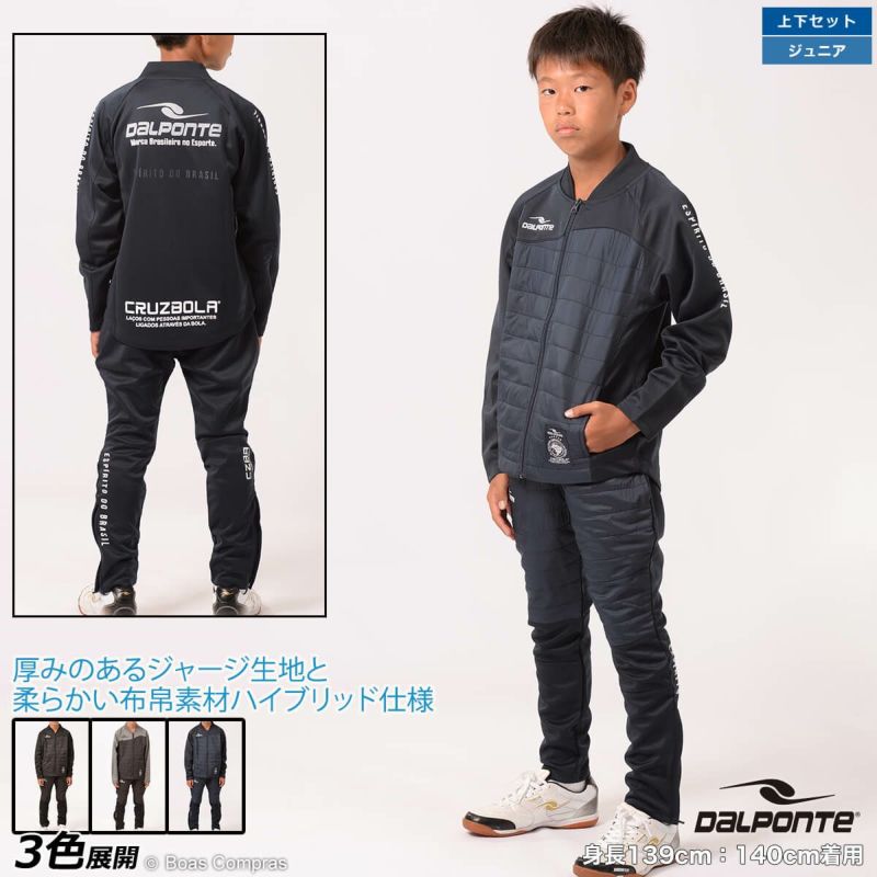 【送料無料】 クルーネックタイプの保温性と防風性の高いジャージ上下セット dalponte ジュニアハイブリッドクルージップジャージ上下セット