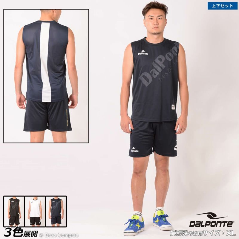 背中は通気性と速乾性の両方を発揮するメッシュ生地の上下セット dalponte エアーライトノースリーブプラクティスシャツ上下セット