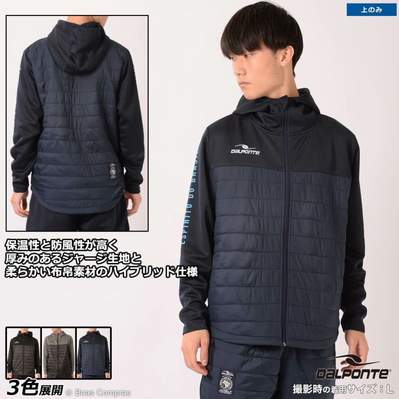 【送料無料】 中綿入りで保温性と防風性を兼ね備えたフードタイプジャケット dalponte ハイブリッドフードジップジャージ