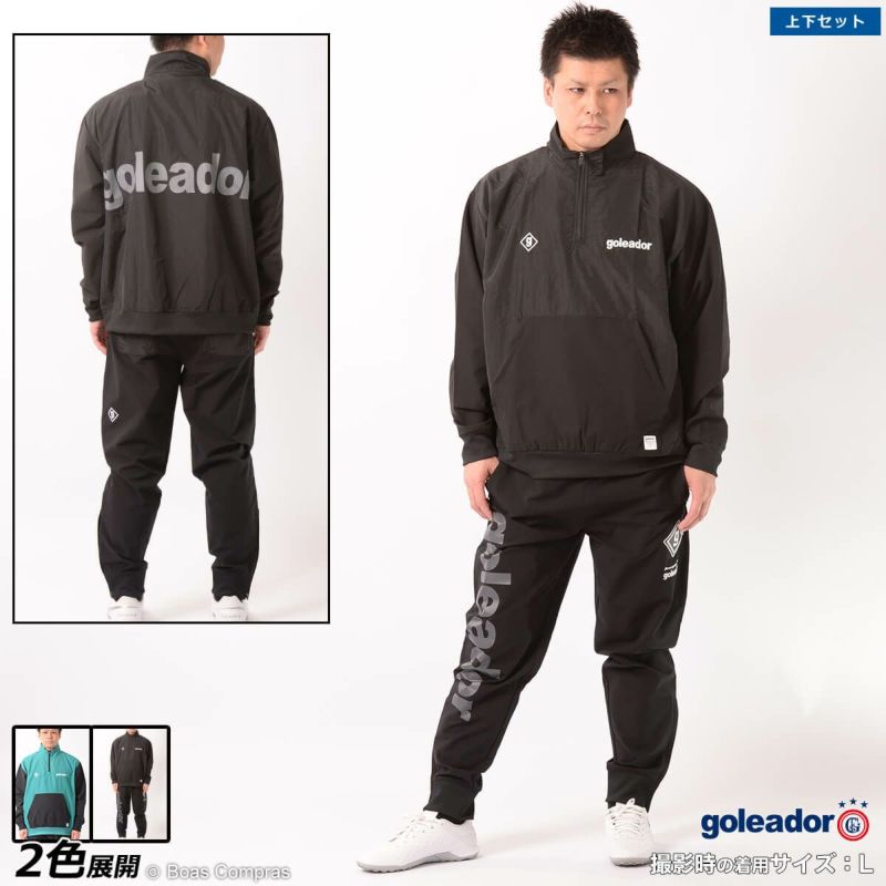 【送料無料】 アップ時や移動着としても着やすさ抜群の上下セット!! goleador ナイロンワッシャースタンドハーフZIPオーバーサイズジャケットテーパードパンツ上下セット