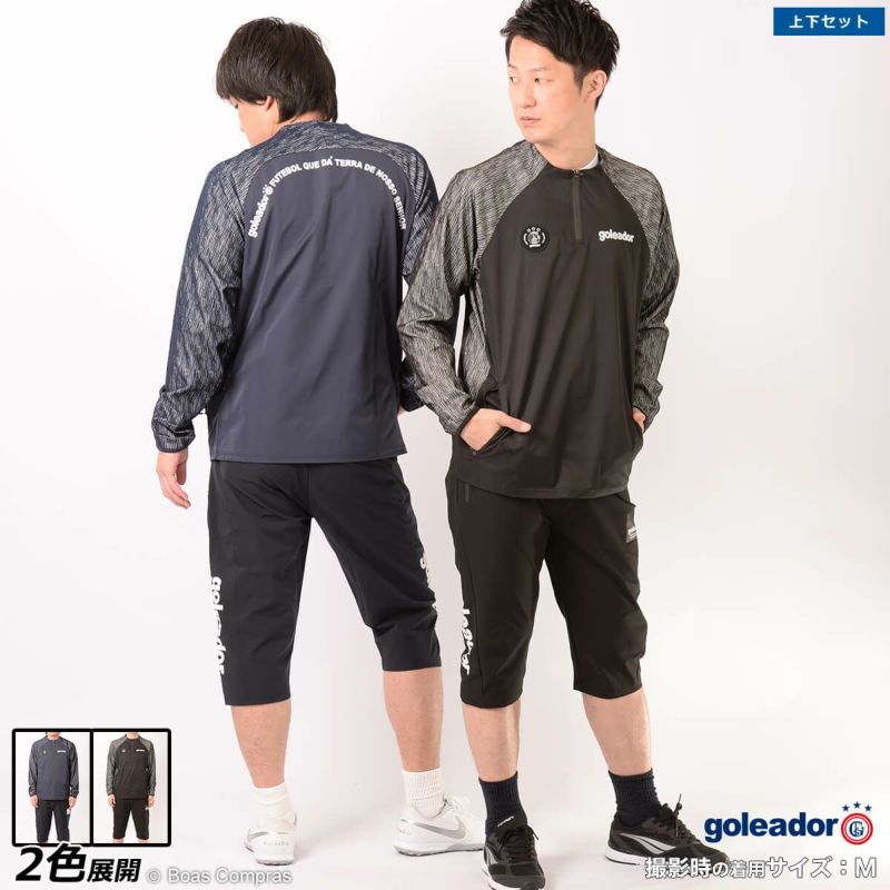 【送料無料】 シンプルかつスタイリッシュなピステトップ上下セット!! goleador ニットコンビネーションハーフZIPピステトップ3/4パンツ上下セット