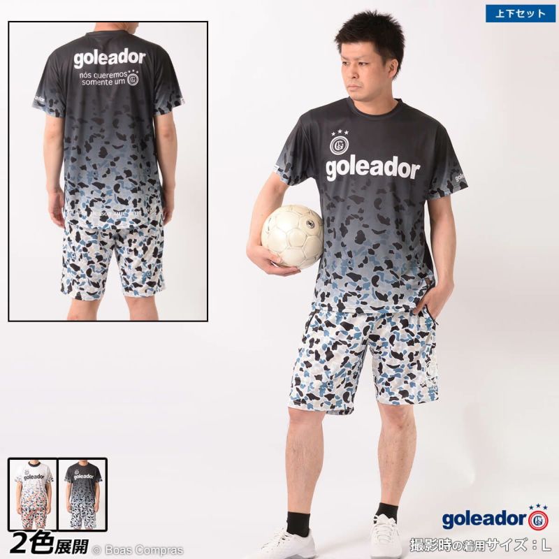 【送料無料】 脇部分はメッシュ切り替えで通気性抜群の上下セット goleador 昇華グラデーション迷彩プリントプラクティスシャツ上下セット