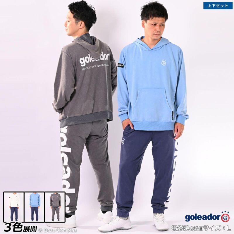 【送料無料】 ピグメント加工を施した独特な風合いが特徴の上下セット goleador ミニ裏毛スウェット袖ピグメント加工パーカー上下セット