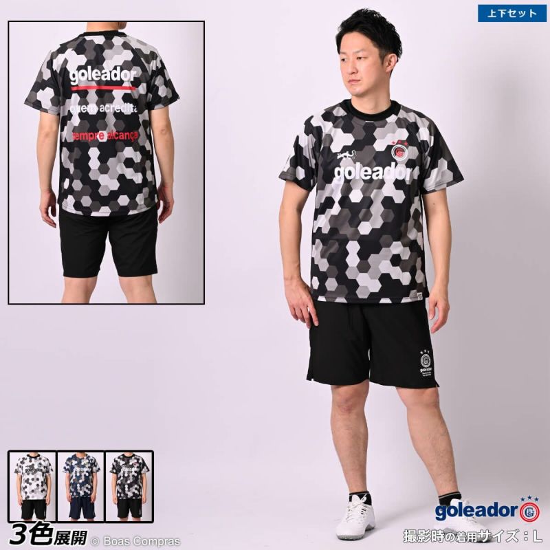 【送料無料】 ヘキサゴン迷彩がお洒落で目を引くプラシャツ上下セット goleador ヘキサゴン迷彩サイドメッシュプラクティスシャツ上下セット